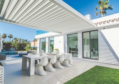 soleil ou d’ombre que vous souhaitez sous votre toit. Vous pouvez facilement contrôler la toiture à lames avec une télécommande ou un smartphone.